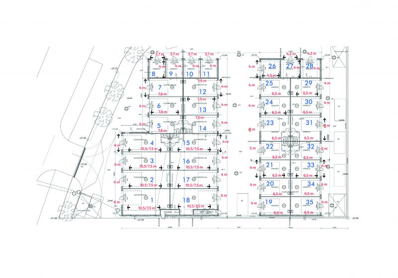 Tilojen käyttöönottoa varten jokaisen hallin leveys ja syvyys on tarkistusmitattu. Tämän tilan leveys on 4 m ja syvyys 7,6 m.