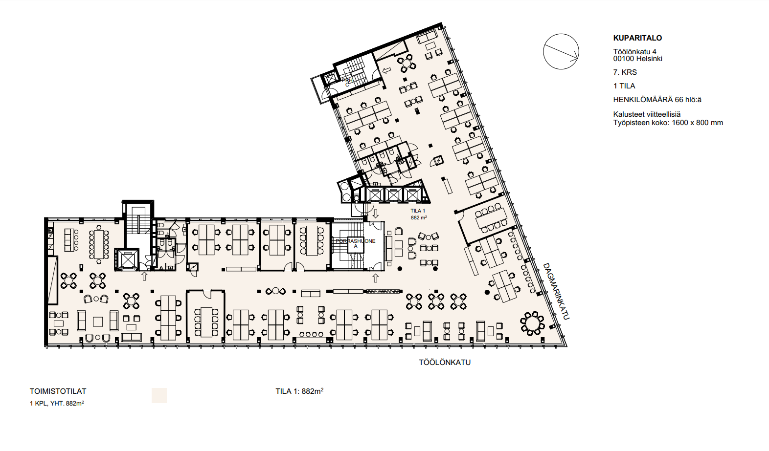 Vuokrataan toimitilaa modernista toimistokiinteistöstä aivan Eduskuntatalon vieressä lyhyen kävelymatkan päässä Kampista ja Rautatientorilta. Tila muodostuu 7. kerroksen puolikkaasta 421 m2. Huom! Kuvat ovat esimerkkikuvia kiinteistön tiloista. Ota yhteyttä ja sovi esittely, vuokrauspalvelumme on tilanhakijoille maksuton.