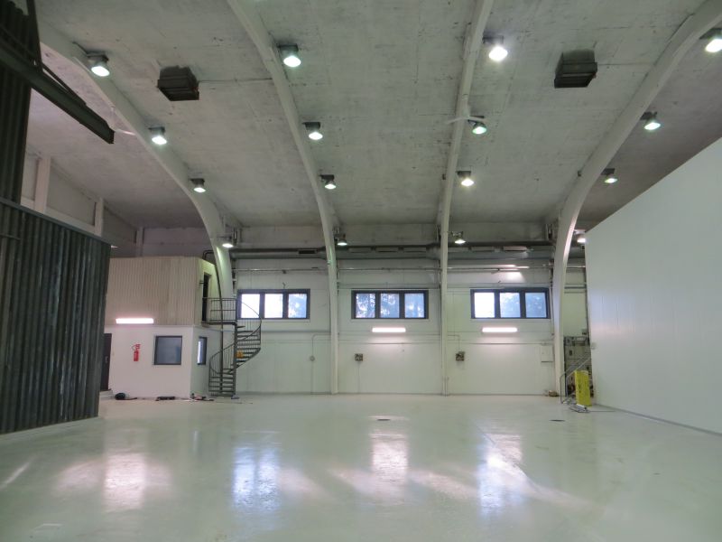 Korkeaa (yli 9m) tuotantotilaa n. 550m2 sekä erilliset toimistotilat 180m2. Lisäksi sosiaalitiloja, varastotiloja ym..