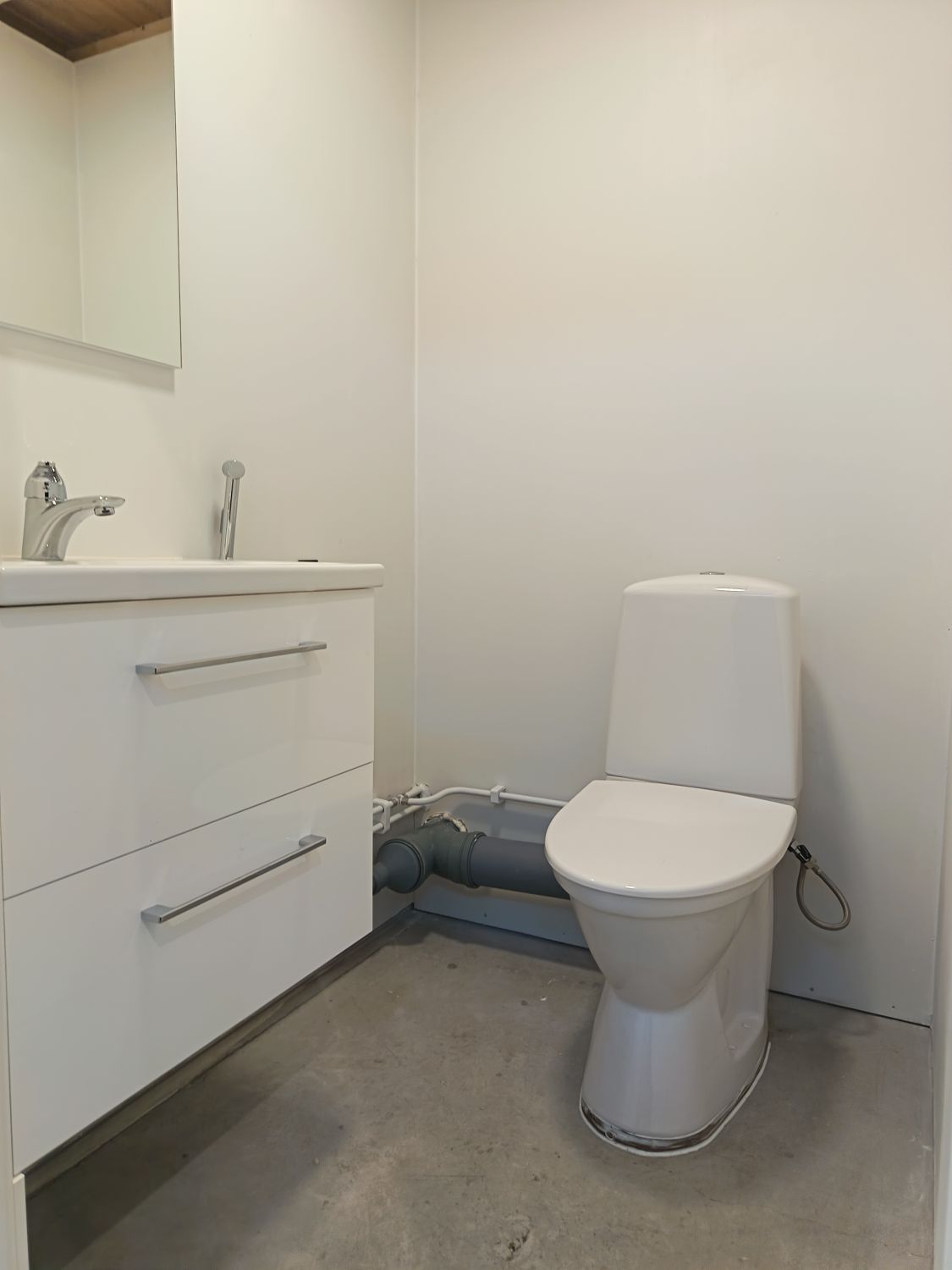 -WC tila kahdella kopilla sekä suihkukaapilla.