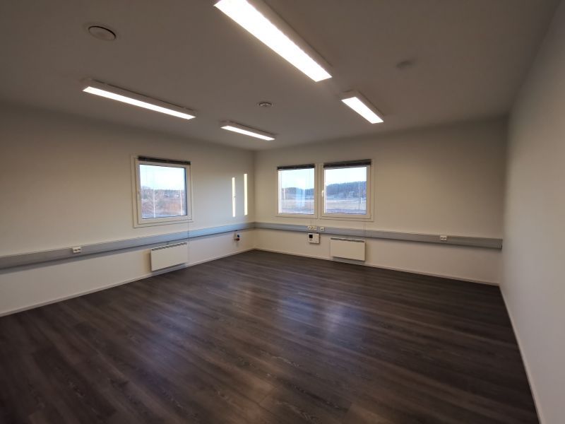 Toimistohuoneissa ilmalämpöpumput, valokuitu nettiyhteys ja yhteinen täydellinen keittiö-taukohuone ja wc:t.