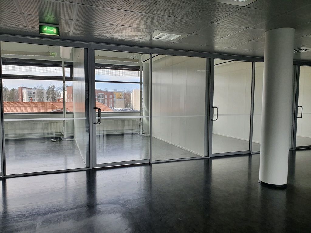 Tämä 490m2 toimistotila sijaitsee kiinteistön 3. kerroksessa. Isot ikkunat tuovat tilaan runsaasti luonnonvaloa. Toimistossa on avotilaa, neuvotteluhuoneita, minikeittiö ja wc-tilat. Kuvat ovat 3. kerroksen toimistotiloista sekä kiinteistön yleisistä tiloista.