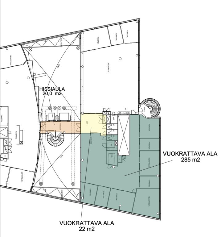Vapaana 285 m² toimisto Santa-Maria -rakennuksen 4. kerroksessa. Tila koostuu avotilasta, työ- ja neuvotteluhuoneista sekä omista keittiö- ja wc-tiloista.