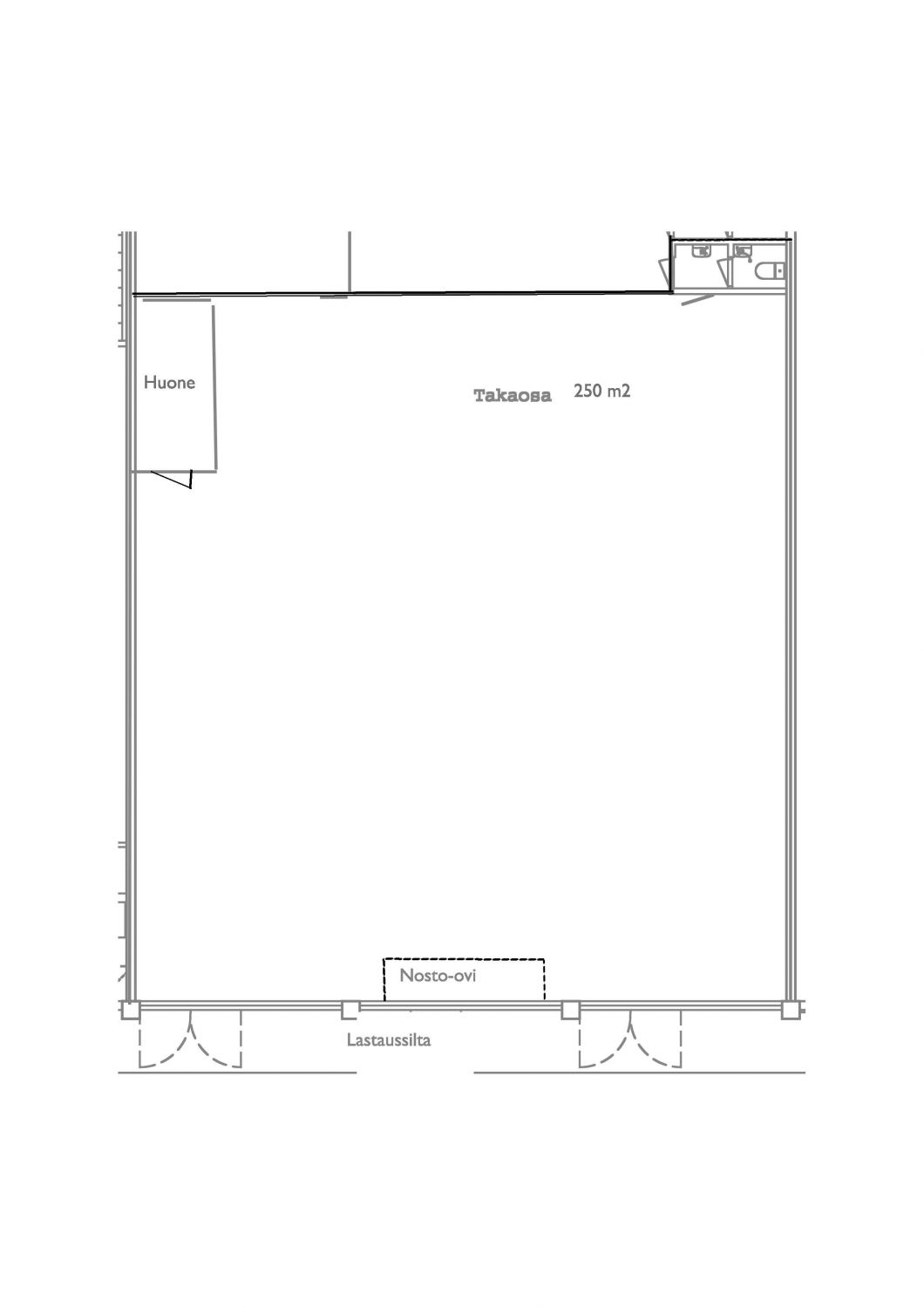 Lastaussillan tila 250 neliömetriä. Tilassa nosto-ovi sekä erilliset käyntiovet