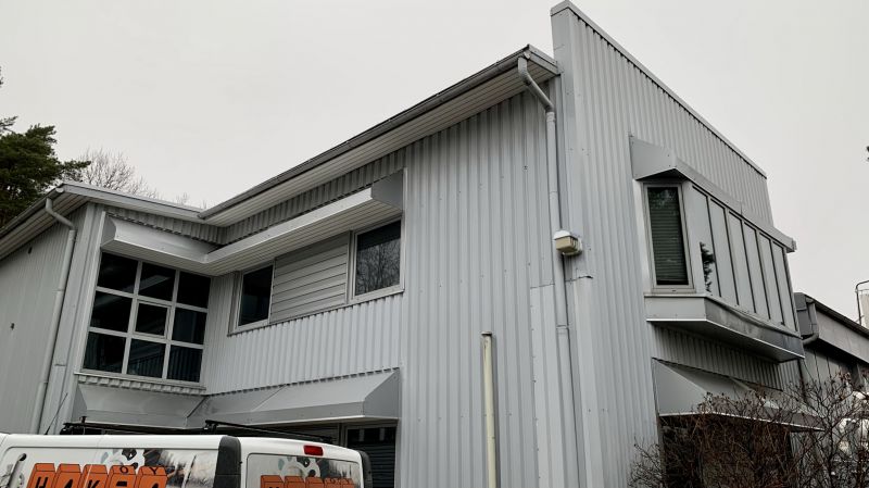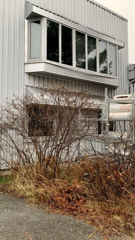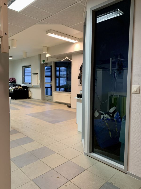 Turun Itäharjulla olevan hallin pääty koostuu kahdessa kerroksessa olevasta toimistokokonaisuudesta.