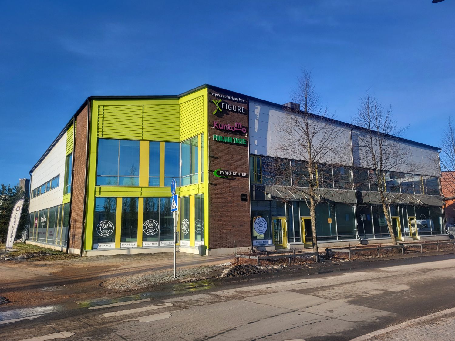 Ravintola, kuntosali, fysioterapiaa ja toimistoja