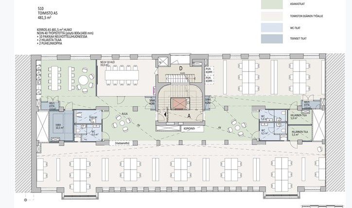 Vuokrattavana 6. kerroksen tehokasta, edustavaa toimistotilaa Helsingin ydinkeskustassa. toimistossa on oma keittiö, neuvotteluhuone ja useampi WC.
