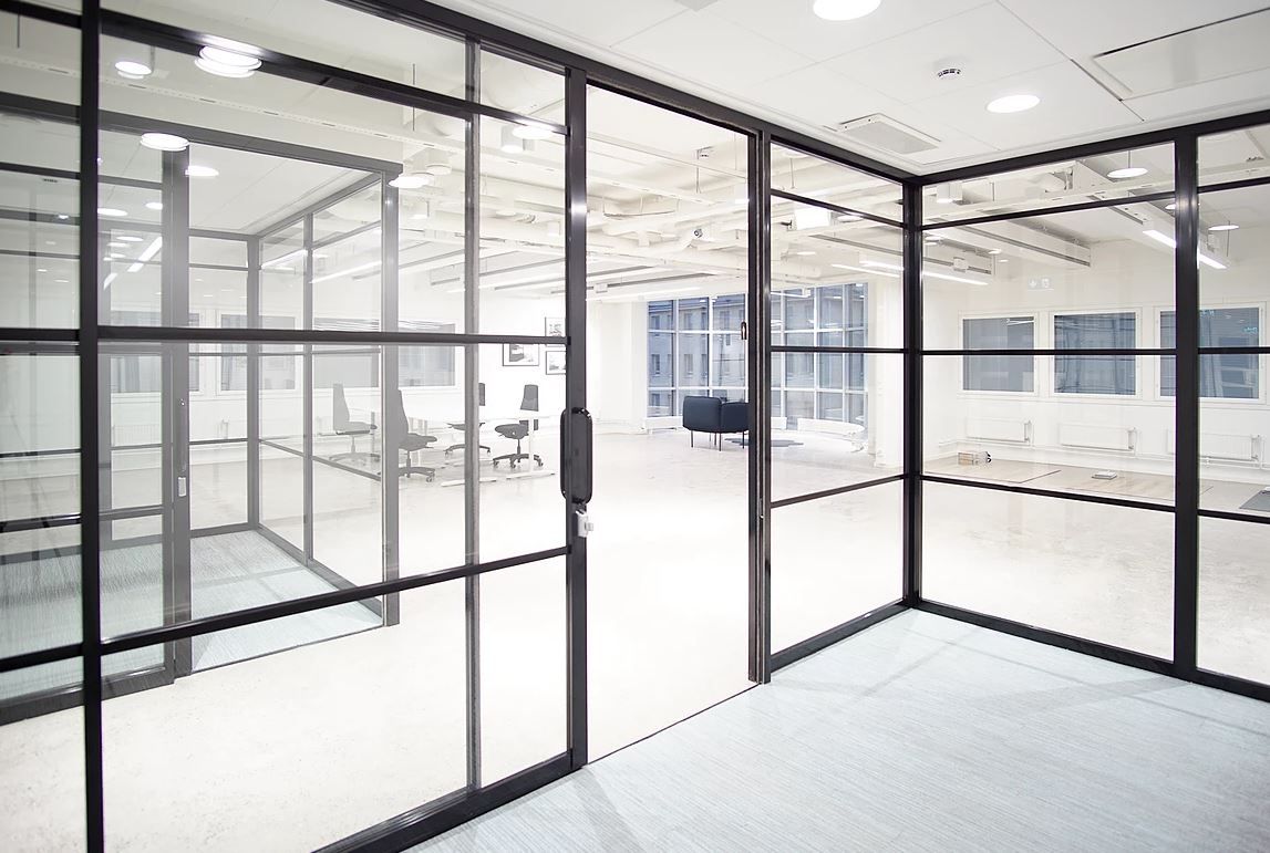 Monitilatoimisto, joka on mahdollista laajentaa koko kerroksen tilaksi. Ohessa havainnollistavia kuvia kiinteistön tiloista.
