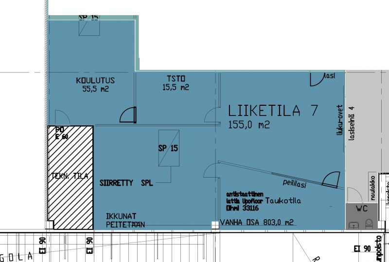 Kiinteistössä myös 102m2 ja 147,5m2 tilat vuokrattavana. Tämä tila on heti vapaa.