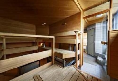 Ylimmässä kerroksessa on veloitusperusteisesti varattavissa saunaosasto neuvottelutiloineen.