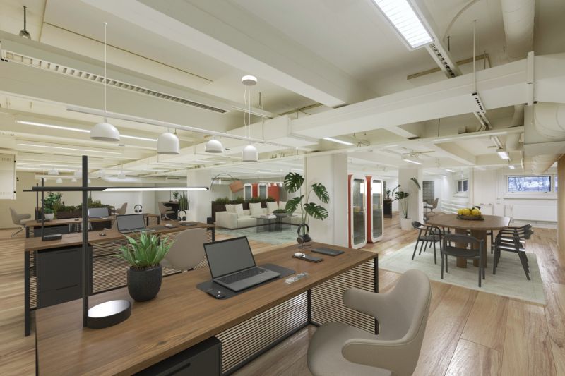 Vuokrattavana hieman matalaa, mutta siistikuntoista, avonaista toimisto-/työtilaa rakennuksen toisessa kerroksessa.