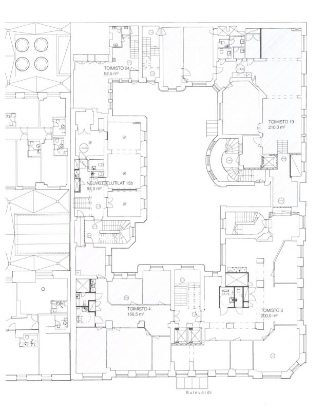 Vuokrattavana 2. kerroksen toimistotilaa, johon saavutaan hissillä upean pääsisäänkäynnin kautta Bulevardilta.