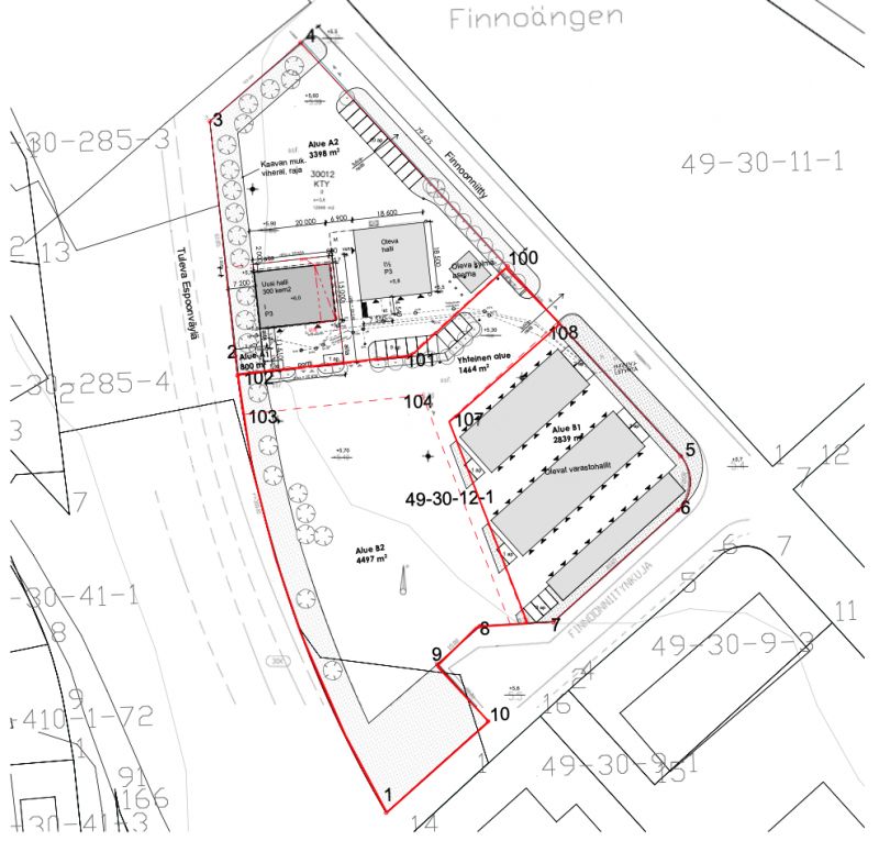 Määräosan koko 5.961 m2. Rakennusoikeus 4899 kem2.