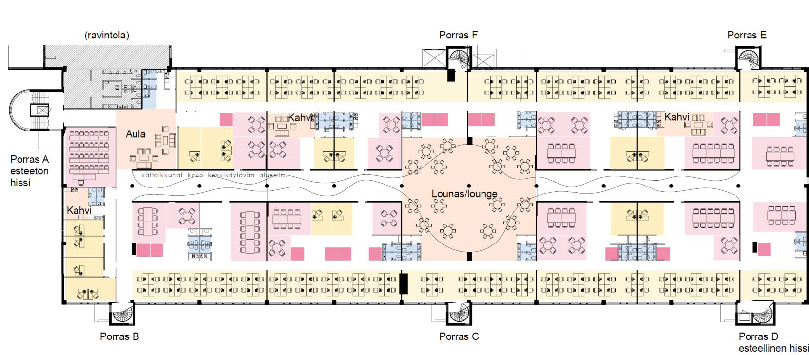 Esteetön kulku useammasta porrashuoneesta.
