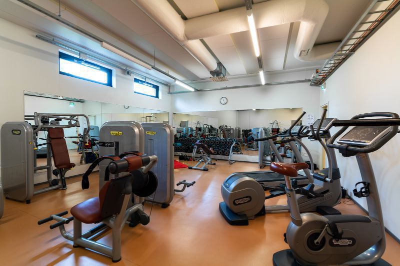 - Kuntosali, jossa suihkut ja kaapit pyöräilijöille