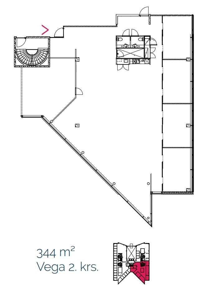 Vapaana kiinteistön 2. kerroksessa valoisa 344 m2 toimitila, joka on muokattavissa vuokralaisen tarpeisiin sopivaksi.