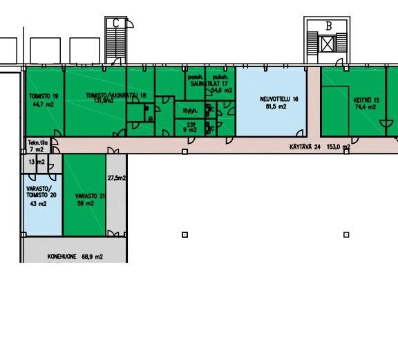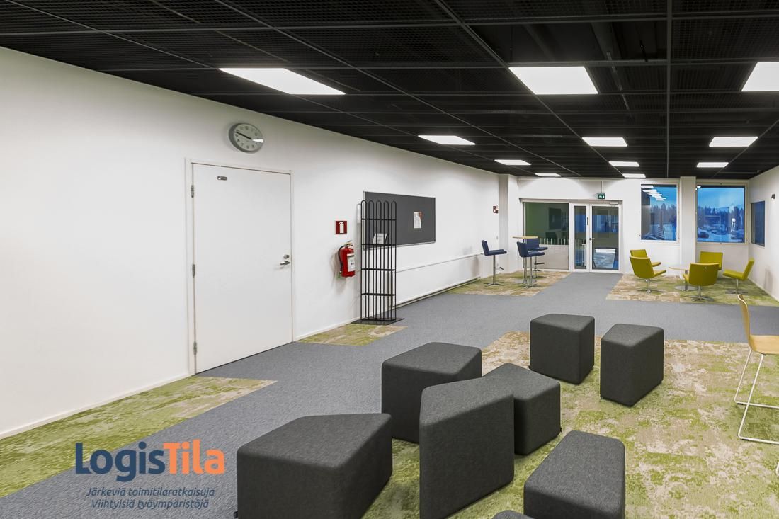 129m² toimistohuone avotoimistoksi, välisermeillä/seinillä jaettavaksi tai varastotilaksi. Yhteiskäytössä olevat sosiaalitilat