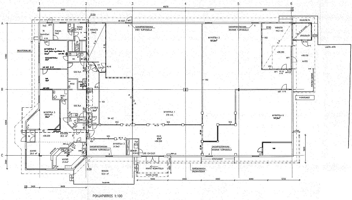Rakennuksen matalasta osasta, sisältäen myyntitila 5, myyntitila 7, kahvila ja keittiö sekä osa sosiaalisia tiloja on jo vuokrattu.