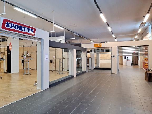 Myyntitila 1/ 279m2 + 27,5 varasto, Myyntitila 2/ 197m2 + varasto 44,5m2 (nosto-ovilla), Myyntitila 3/ 21,5m2, Myyntitila 4 / 54m2 ja Myyntitila 6 / 147m2. Nykyisellään myyntitilat 1 ja 4 ovat yhdistettynä isommaksi 360,5m2 tilaksi varastoineen, jotka voidaan tarvittaessa eriyttää. Varastot vuokrataan ainoastaan myymälätilojen yhteydessä.