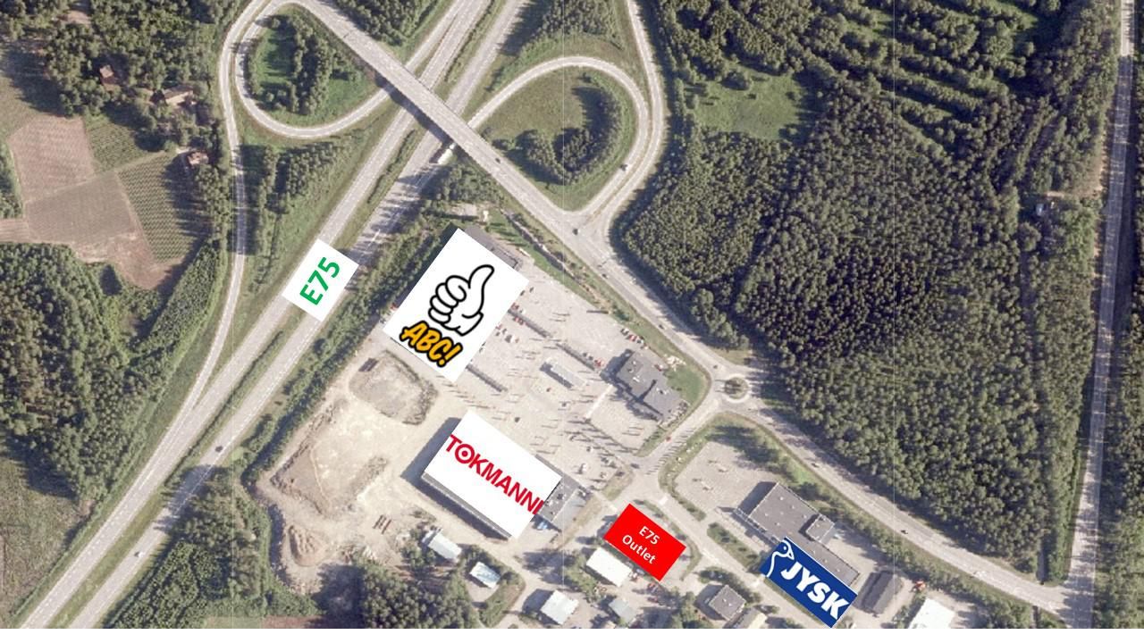 E75 moottoritien pohjoisessa liittymässä, Vuohkallion kauppakeskittymässä.