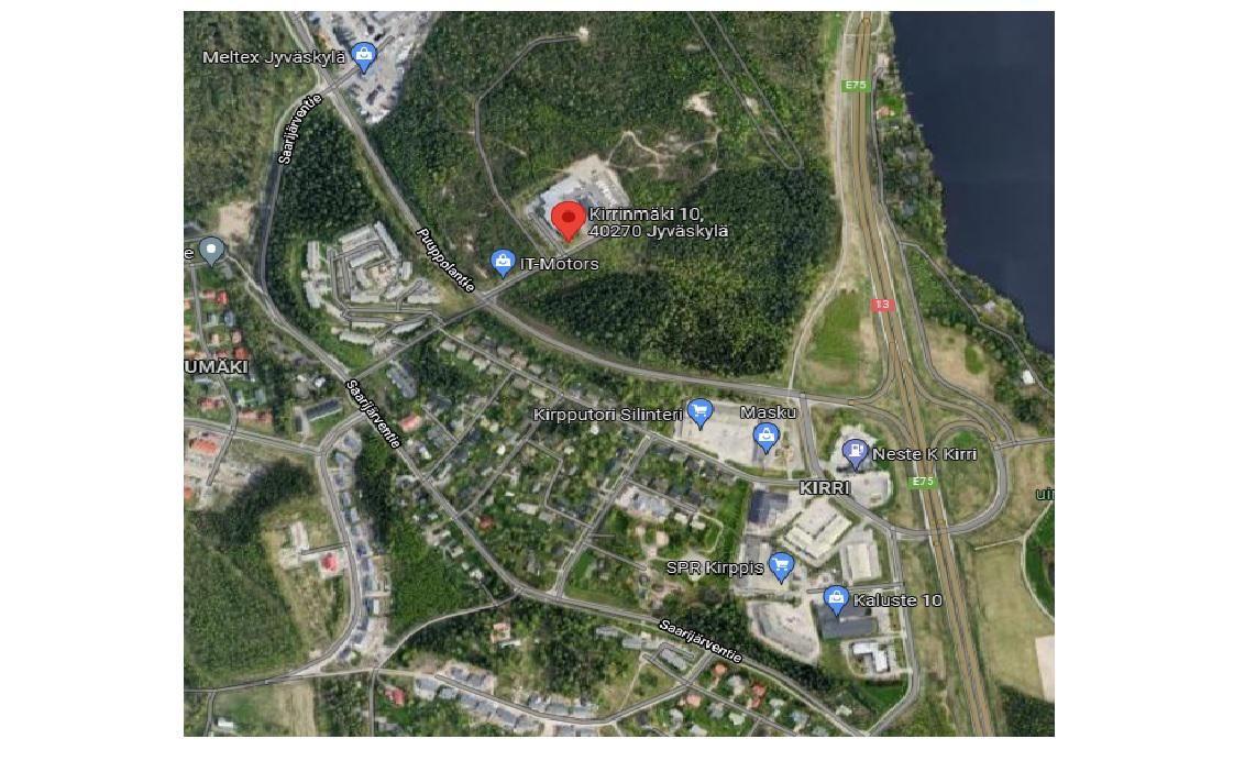 Kiinteistö sijaitsee muutaman sadan metrin päässä nelostiestä (E75). Lähin lounaspaikka n. 400 m päässä Kirrin Neste asemalla. Palokan marketit ja kauppakeskus muutaman minuutin automatkan päässä. Kohteeseen on helppo saapua pohjoisesta ja etelästä. Jyväskylän keskusta n. 9,3 km (n. 10 min.), Jyväskylän matkakeskus n. 11 km (n. 10 min.), Jyväskylän lentoasema n. 15 km (n. 15 min.).