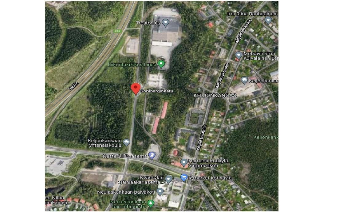 Keljonkankaalla hyvien kulkuyhteyksien varrella. Noin kilometri moottoritieltä. Viereisessä teollisuusrakennuksessa työpaikkaruokala. Lähellä myös muita lounaspaikkoja. ABC Keljonkangas n. 800 m, Jyväskylän keskustaan n. 8 km (n. 10 min.), Muurame n. 8 km (n. 10 min.), Säynätsalo n. 8 km (n. 10 min.).