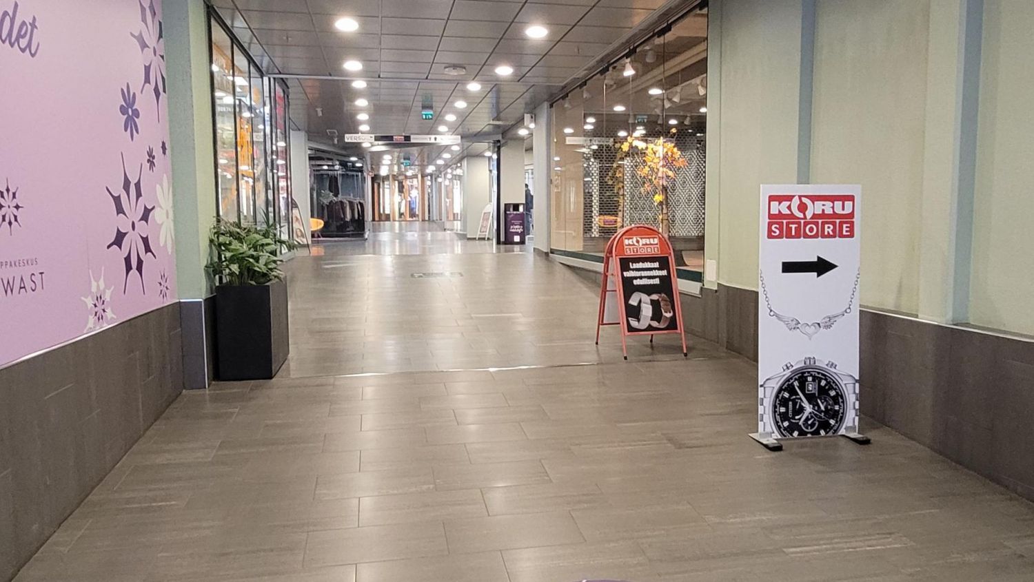 Siistit liiketilat, joissa ikkunapintaa käytävälle ja hyvät myymälävalot.