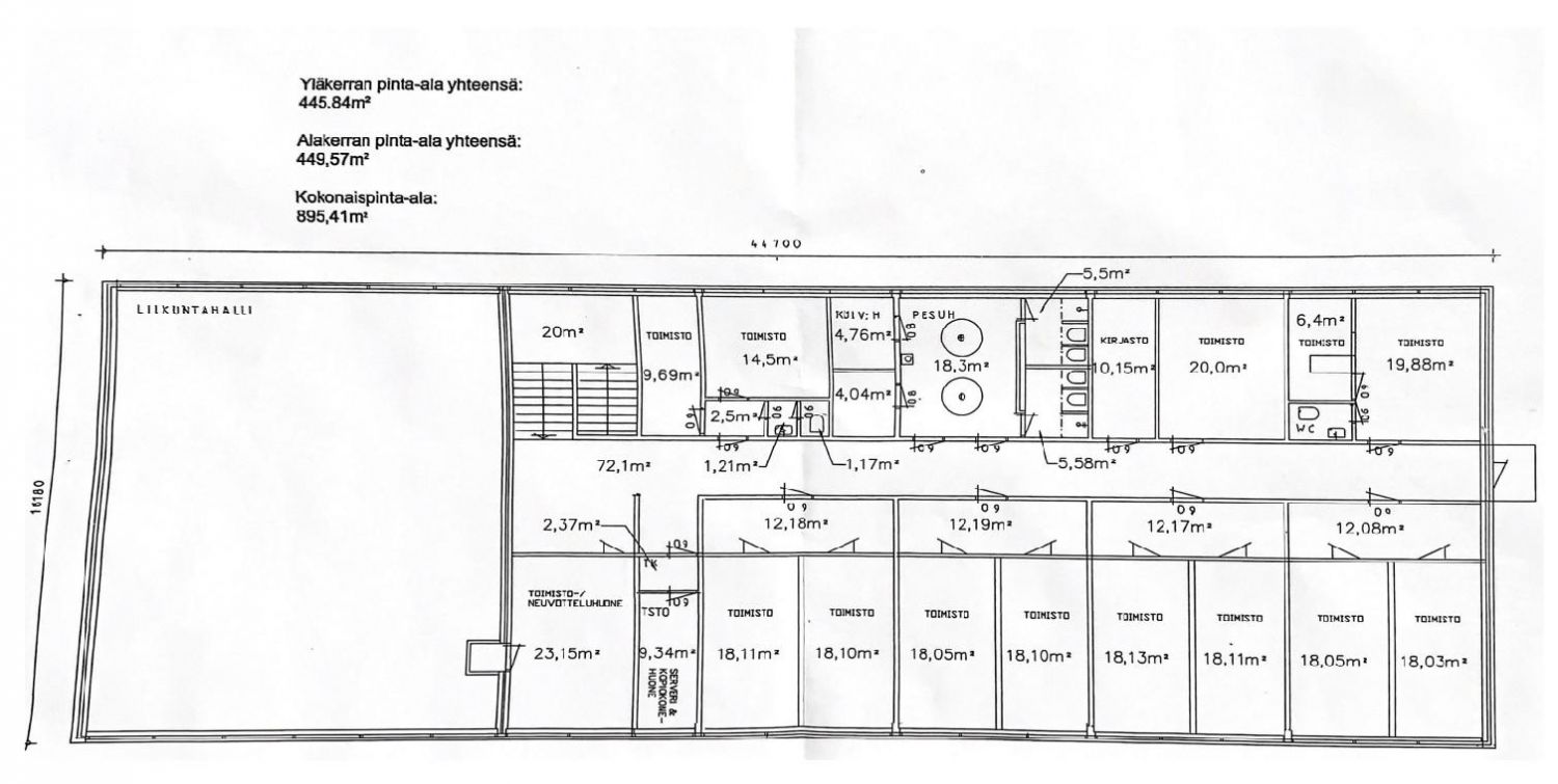 Vapaana siistiä ja remontoitua toimisto-, varasto ja hoivatilaa Kanavuoresta. Yläkerrassa on siistiä ja remontoitua toimistotilaa n. 210 m2. Tilassa on reilun kokoisia toimistohuoneita, jotka soveltuvat useamman, kuin yhden henkilön toimistoiksi. Tilat soveltuvat myös esim. majoitustoimintaan. Kerroksessa neuvottelutila ja keittiö- / taukotila. Alakerrassa peruskuntoinen sauna ja suihkutila esim. maastossa työskenteleville työntekijöille. Alakerrassa on myös n. 190 neliöinen liikuntasali, joka toimii tällä hetkellä varastona. Liikuntasalin vapaa korkeus on 4,9 - 5,9 m. Pihatilaa mahdollisuus vuokrata säilytykseen.