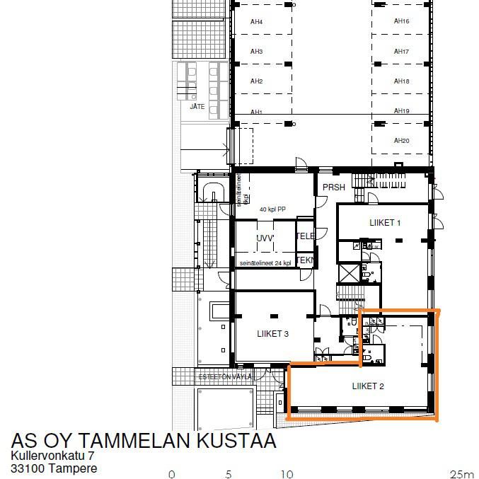 Tammelan Kullervonkadun ja Pinninkadun kulmaan valmistuneen asuinrakennuksen kivijalassa uusi toimitila 59 m2.