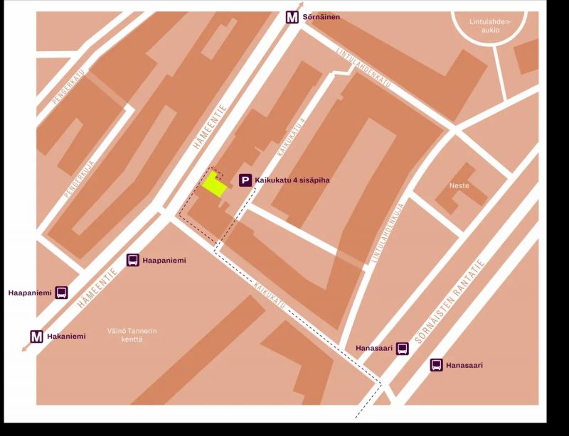 Kiinteistö sijaitsee erinomaisten liikenneyhteyksien varrella. Bussi- ja raitiovaunupysäkit sekä metro ovat kaikki aivan vieressä.