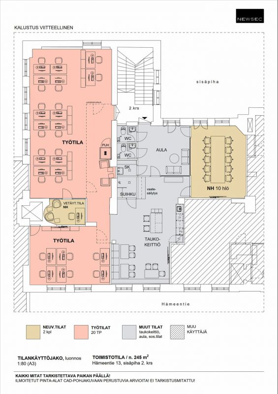 Toimistotila sijaitsee 1. kerroksessa, joka Hämeentien puolella on katutasossa. Tila on yhdistettävissä myös 450 m² kokonaisuudeksi.