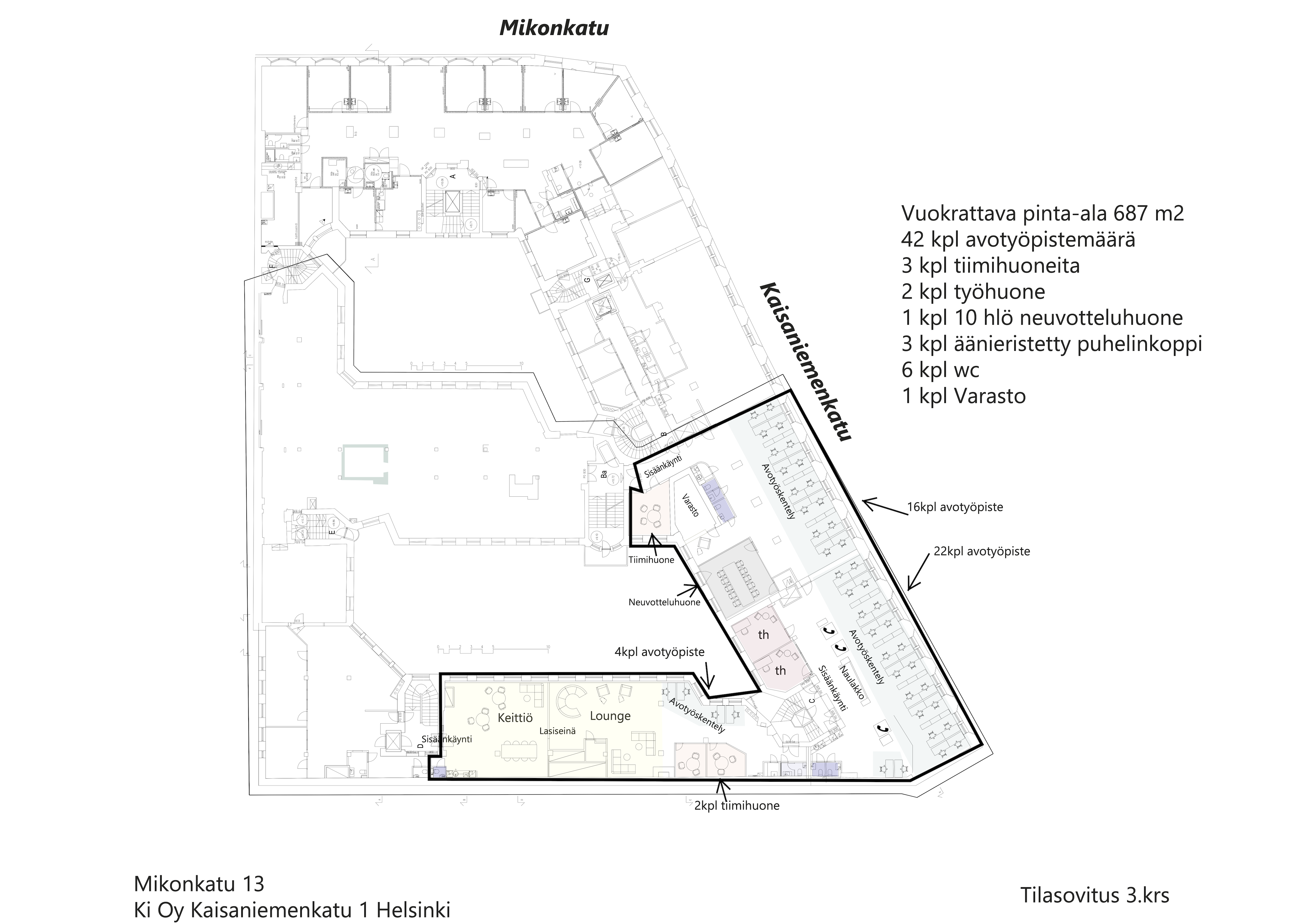 Kerroksesta on vuokrattavissa esim. 687 m² kokonaisuus.