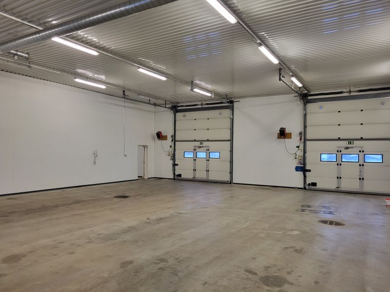 Koko halliin rakennettu uudet lattiarakenteet raskaille ajoneuvoille 2018-19. Nosto-ovellisten hallitilojen korkeus n.4700. Nosto-ovet 3800 x 4400.