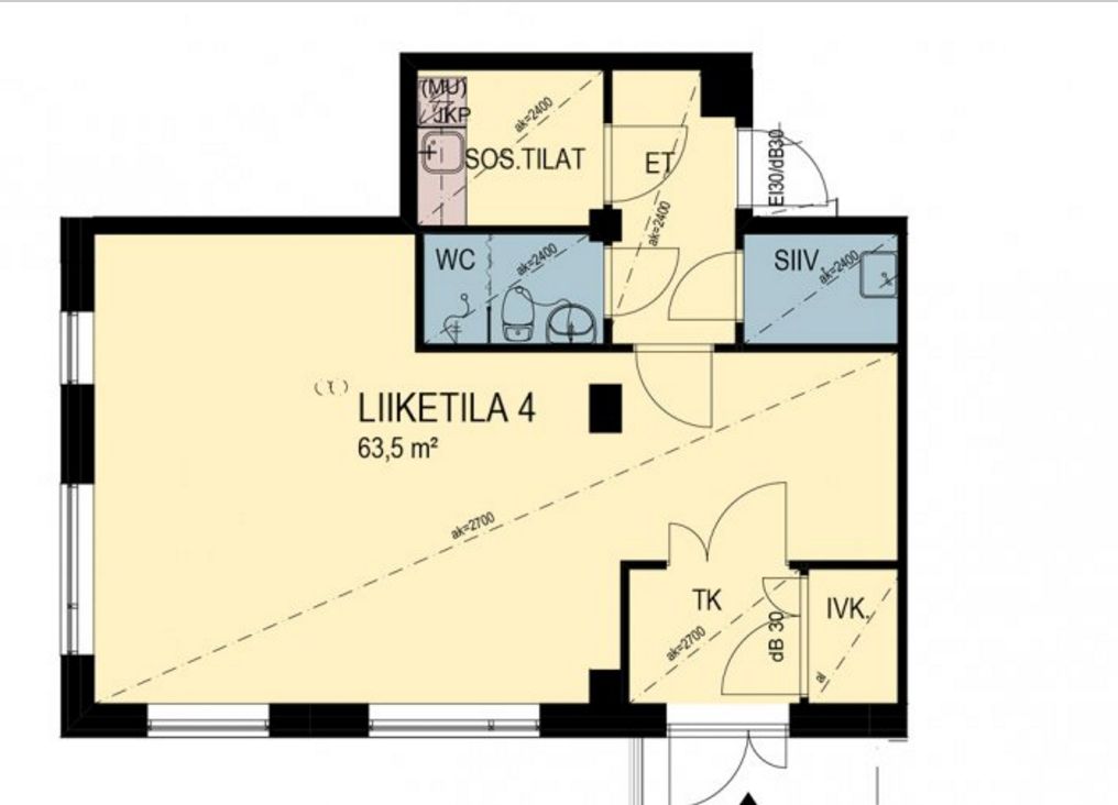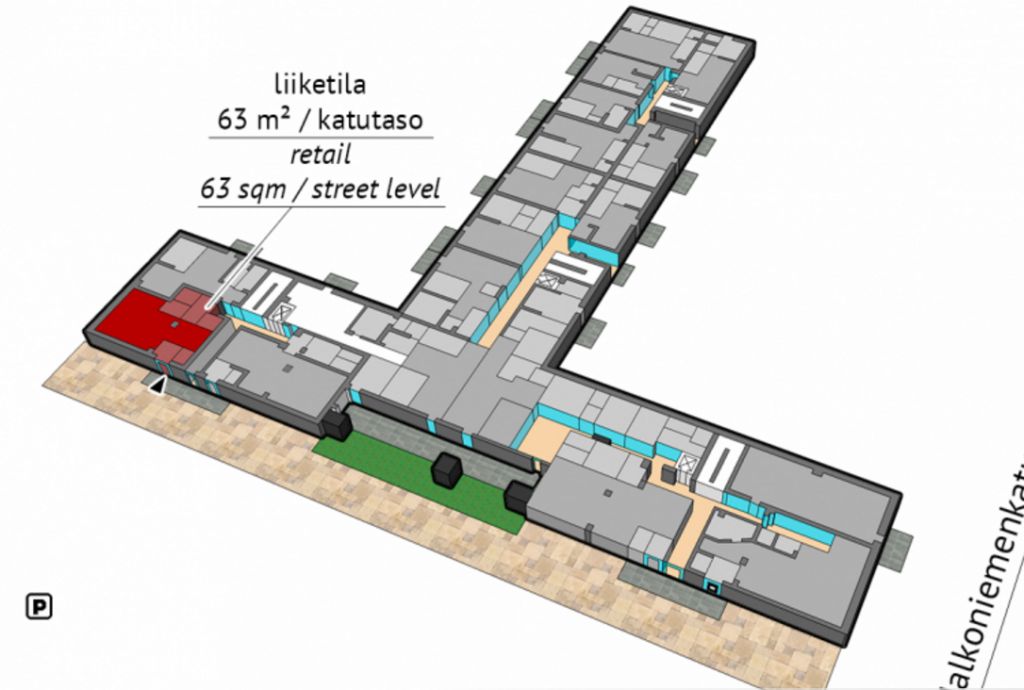 Uudehkon asuinkiinteistön B-portaan kivijalassa sijaitseva ilmastoitu liiketila.
