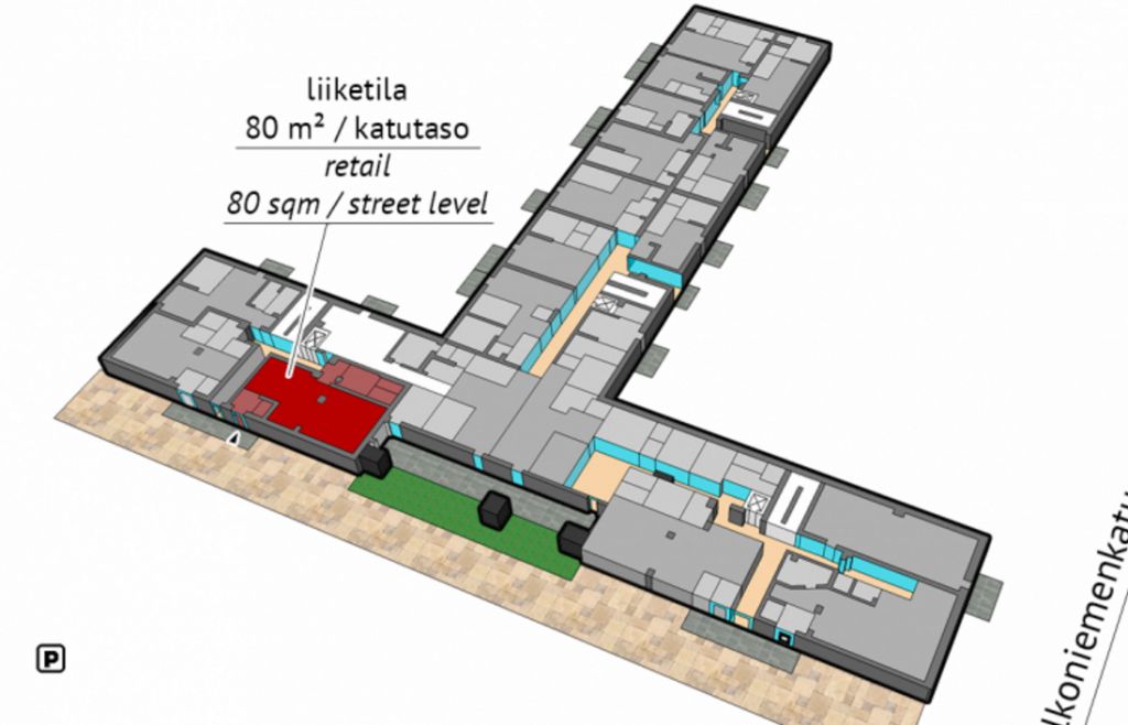 Uudehkon asuinkiinteistön B-portaan kivijalassa sijaitseva ilmastoitu valoisa, kiva liiketila.