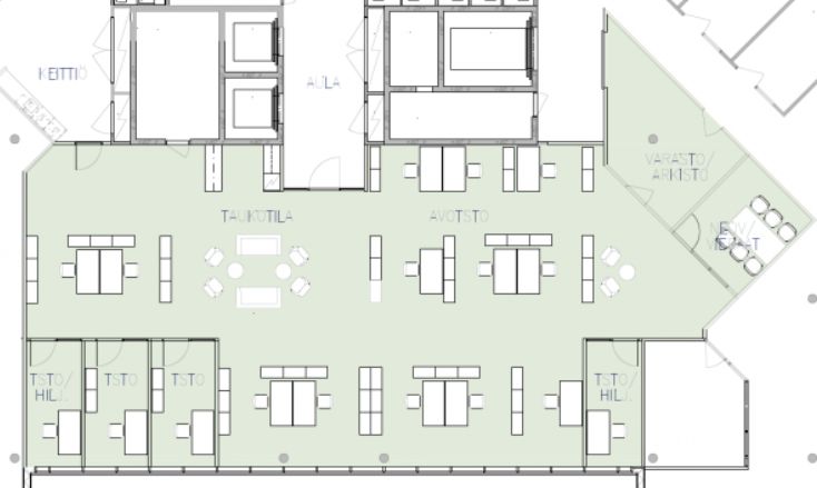 Vuokrattavana 4. kerroksen toimistotila ( 293 m2). Nykyhetkellä avotila ja yksi huone. Tilat modernisoidaan ja tiloihin tulee tyylikkäät keittiö ja neuvottelutilat yhteiseen käyttöön. Vuokraan kuuluu sähkö ja internet. Kohteessa on aulapalvelu ja edustusaunat.