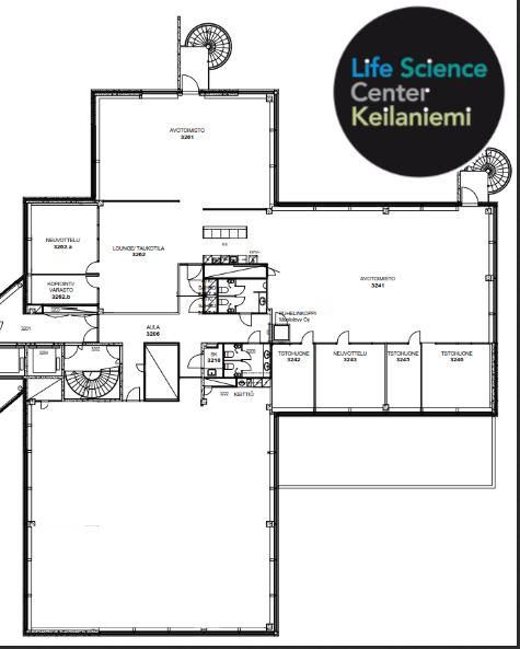 Valoisa ja avara 3.kerroksen toimistotila Keilaniemen Life Science Centerista.