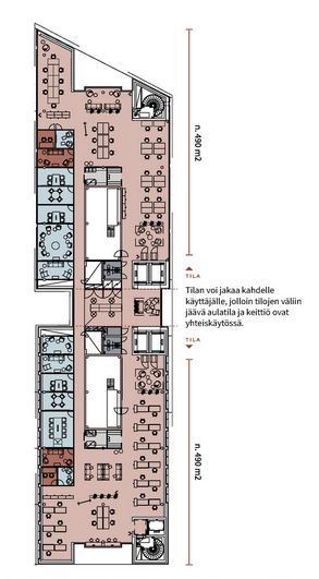 Kiinteistössä henkilöstöravintola, vuokrattavia neuvottelutiloja, pysäköinti.