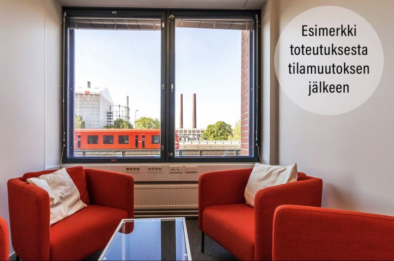 Siistiä, hiljattain remontoitua 314m2 toimistotilaa hyvällä sijainnilla. Toiseksi ylin viides kerros, jossa ikkunat pohjoiseen sisäpihalle. Tilat voidaan muokata käyttäjän tarpeisiin. Max 31 hlö. Kohde sijaitsee Kalasataman uuden metroaseman ja Kauppakeskus Redin vieressä.