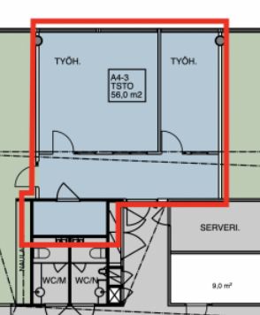 Vuokrattavana 4.kerroksen toimistotila ( 54 m2). Tila koostuu kolmesta huoneesta.