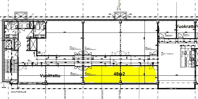 Vuokrattavana toimistohuone 48 m2 pientoimistokerroksesta. Yhteiset keittiö- ja sosiaalitilat.
