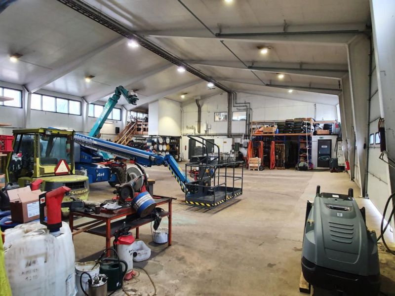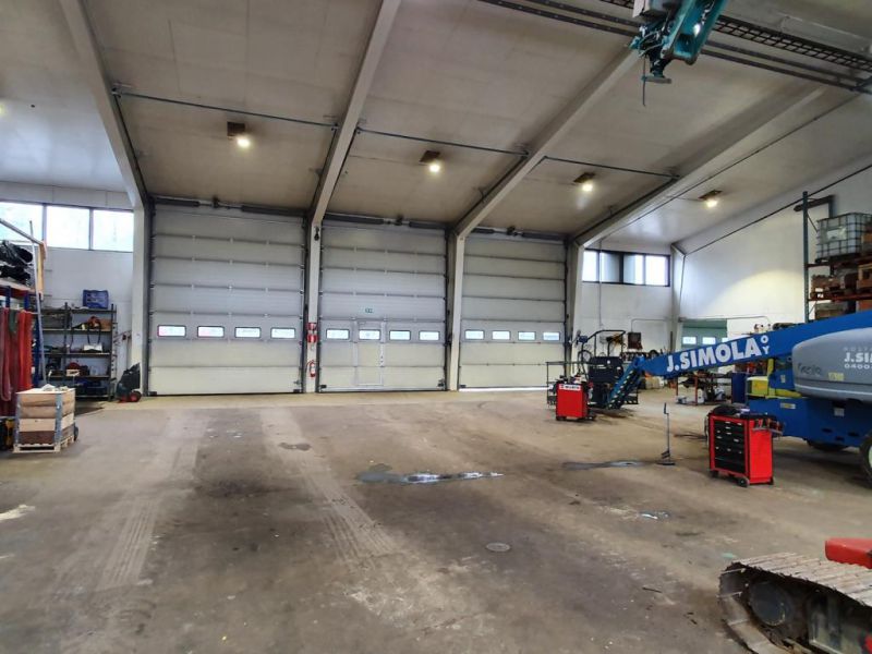 Tilat toimivat tällä hetkellä raskaan kaluston huoltohallina. Hallin vapaa korkeus 5 metriä, yhteensä 6 nosto-ovea, joiden mitat on Kork 5m x Lev 4m. Lisäksi 546m2 osiossa erikseen n. 100m2 toimisto sekä sos.tilat. Todella iso pihapiiri.