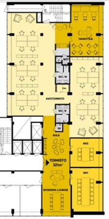 Vuokrattavana moderni (huone)toimisto 321 m2. 4.kerroksessa sijatseva toimisto käsittää useita huoneita.