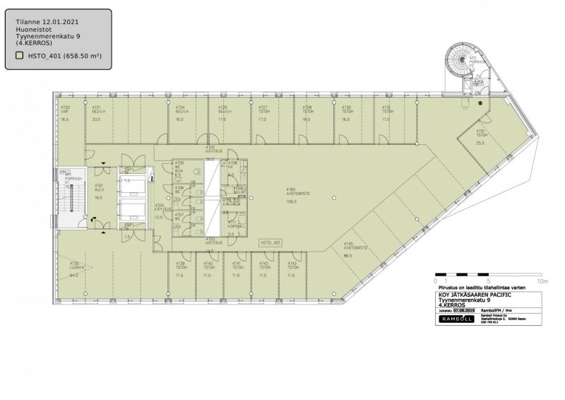 Vuokrataan neljännen kerroksen 658m2 toimistotila, jossa on useita työhuoneita sekä avotilaa. Tilaa on mahdollista muokata tulevan vuokralaisen tarpeiden mukaan. Kiinteistö sijaitsee erinomaisella paikalla Helsingin Jätkäsaaressa, johon kävelee Ruoholahden metroasemalta noin 10 minuutissa, ja kevyen liikenteen Baanaa pitkin ydinkeskustaan on vain parin kilometrin matka.