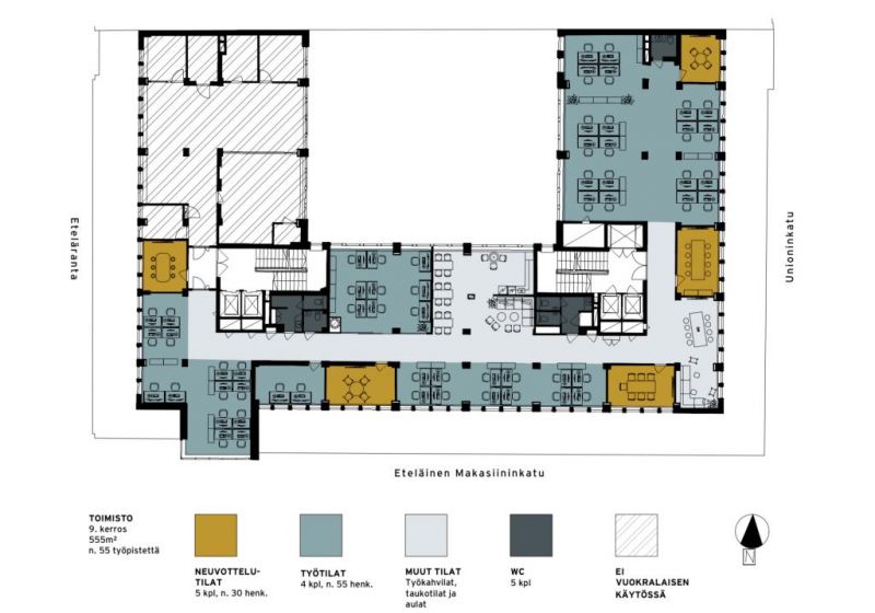 Vuokrataan merellisessä ympäristössä kahdeksannen kerroksen 555m2 toimistokokonaisuus Helsingin keskustassa. Kauppatorin kupeessa sijaitseva Eteläranta 8 tarjoaa laadukkaan työympäristön kolmeen suuntaan avautuvilla, upeilla näkymillä. Sisätiloiltaan ja tekniikaltaan uusitun kiinteistön vuokrattavat toimistotilat palvelevat täydellisesti nykyaikaista käyttäjää keskustan palvelujen ja sujuvien yhteyksien äärellä.