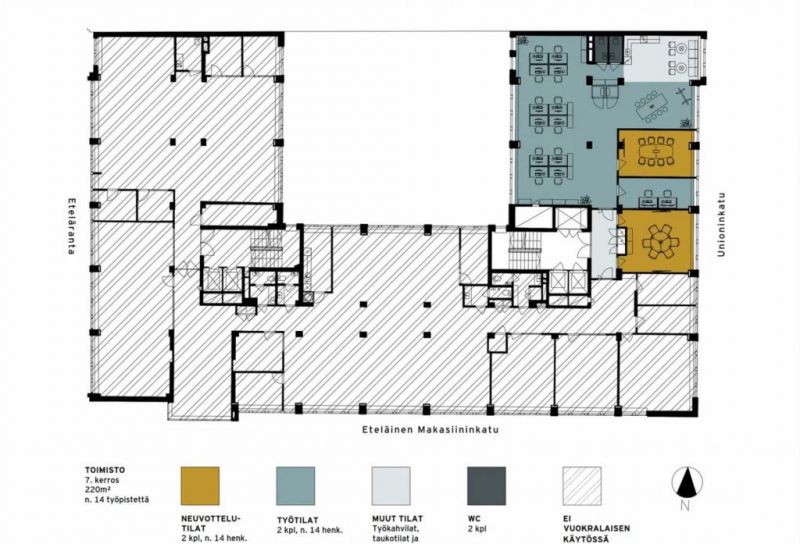 Vuokrattavat tilat sijaitsevat kerroksissa 7–8, ja ne remontoidaan käyttäjän toiveiden mukaan.