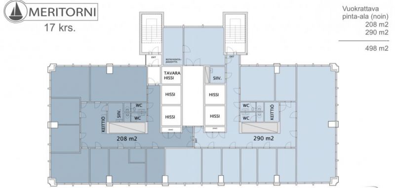 Vuokrataan Helsingin Merihaassa keskustan korkeimmassa rakennuksessa huikeilla näkymillä 17. kerroksen 208m2 toimistotila.