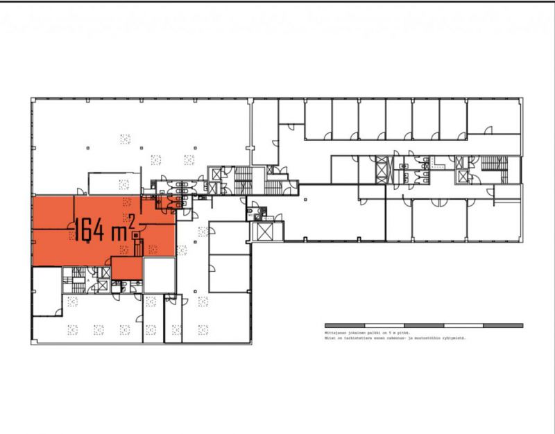 Vuokrataan kuudennen ylimmän kerroksen 164m2 toimisto, jossa kolme erillistä huonetta toimistohuoneiksi tai neuvottelutiloiksi. Yksi huoneista lasiseinäinen. Toimistotilassa myös kattoikkunoita. Keittiö ja wc. Käytössä henkilöhissi.