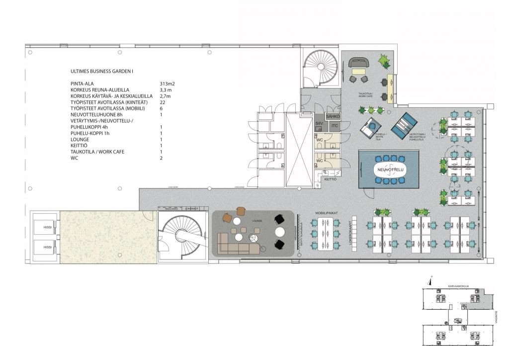 Vuokrataan kuudennen kerroksen 313m2 toimisto Ultimes Business Gardenista Pitäjänmäen näkyvimmillä paikalla Vihdintien alussa osoitteessa Karvaamokuja 2 a.