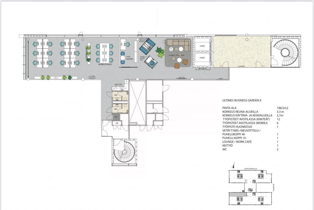 Vuokrataan neljännen kerroksen 188,5m2 toimisto Ultimes Business Gardenista Pitäjänmäen näkyvimmillä paikalla Vihdintien alussa osoitteessa Karvaamokuja 2 a.